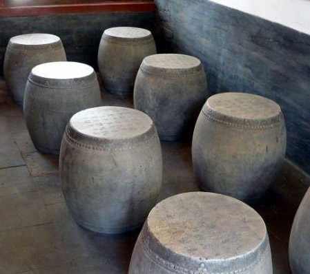 关于现今乾隆石鼓的存置位置,即北京孔庙大成门外两侧的确定,实际与当时周石鼓的位置相对应,所以,要了解乾隆石鼓现今存放位置的原因,就首先必须考定周石鼓存放于北京孔庙时的情形。周石鼓来到北京孔庙大成门内之前,经历了非常曲折的过程。