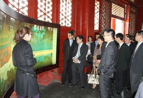 2013年4月16日中午,新加坡常秘访华团一行二十余人到孔庙和国子监博物馆参观考察。东城区区委常委、区组织部部长吴松元、孔庙和国子监博物馆书记徐明陪同参观考察。