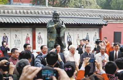 2013年9月28日在北京孔庙崇圣祠前院举行了“孔门七十二贤瓷板画暨岫岩玉雕孔子像”国学文化新景观揭幕仪式,同时孔门七十二贤瓷板画配以人物介绍和《论语》名言警句,图文并茂。玉雕孔子像以唐代画圣吴道子“孔子画像”为蓝本,选用岫岩玉精心雕琢而成。