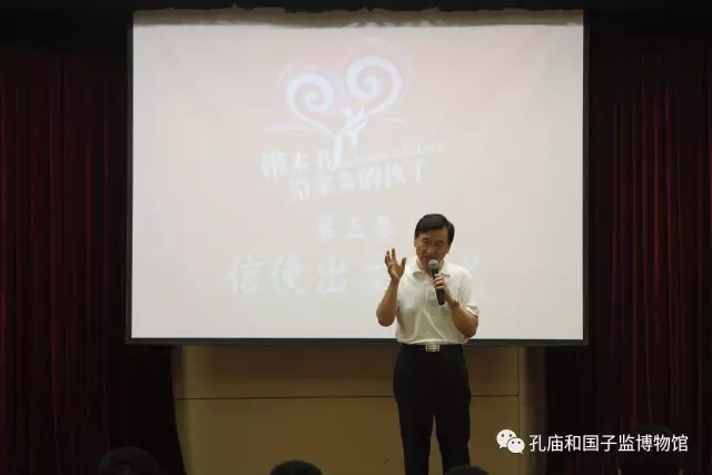 本次公益活动孔庙和国子监博物馆大力协办,吴志友馆长代表博物馆为本次公益活动送上了美好的祝愿,讲述了康熙皇帝手书的彝伦堂匾额中的“彝”字。
