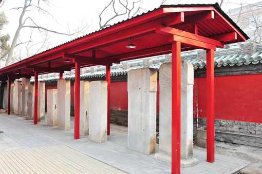 孔庙占地22000平方米,有三进院落。中轴线上的建筑依次为先师门、大成门、大成殿、崇圣祠。前院东面有碑亭、神厨、省牲亭、井亭;西面有碑亭、致斋所,并有持敬门与国子监相通。两侧排列着198座元、明、清三代进士题名碑,刻有51624名进士的姓名、籍贯、名次,是研究我国科举制度的珍贵实物资料。中院的主要建筑为东西庑和13座御碑亭;后院崇圣祠独立成院,集合成北京孔庙完整的古建筑群体。