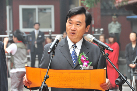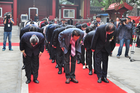 今天在孔庙大成殿前举行的“祭孔大典”,是第二届孔庙国子监国学文化节重点推出的活动亮点,共有500余名来自社会各界的领导、专家、学者、以及市民代表出席祭孔活动,将第二届孔庙国子监国学文化节活动推向了高潮。新华社、北京电视台等新闻媒体对吴志友馆长进行了专访。