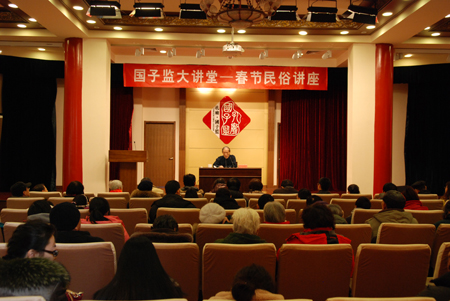 2月6日(正月十五)上午,由孔庙和国子监博物馆主办的2012年首场 “国子监国学大讲堂”文化讲座活动在国子监彝伦堂隆重开讲。