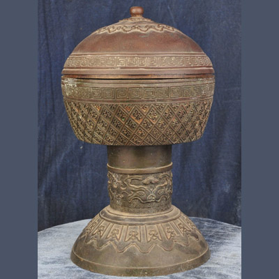 乾隆带盖锦纹铜镫
